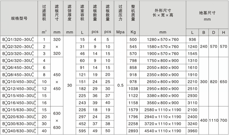 千斤頂壓緊板框式壓濾機技術參數