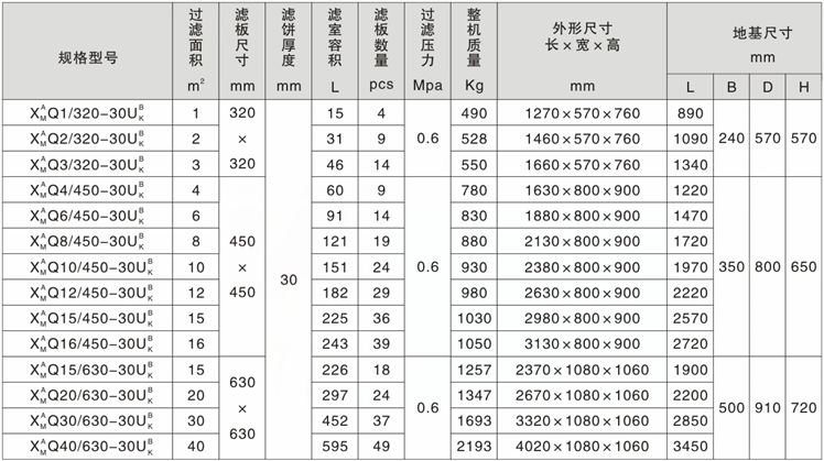 千斤頂壓緊廂式壓濾機技術參數